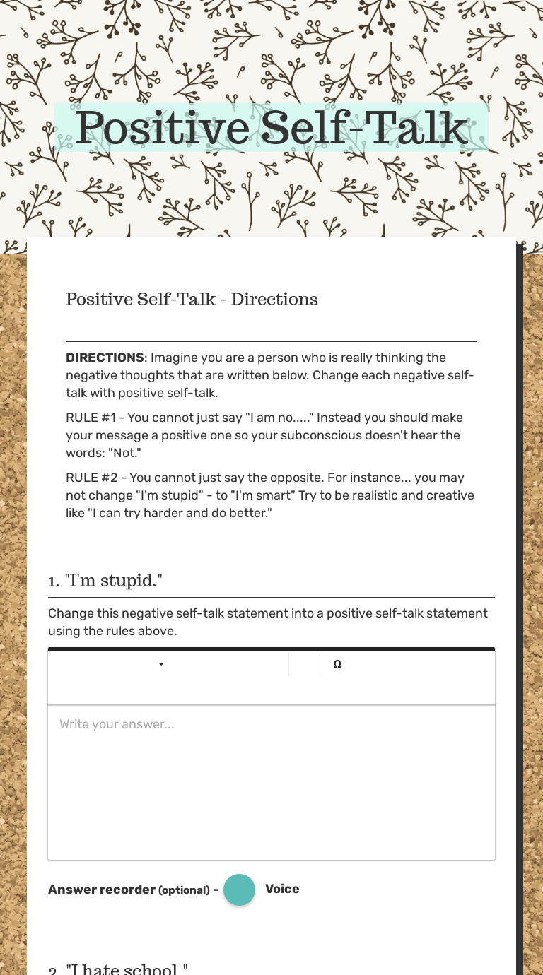 Negative Self Talk Worksheet : Making Negative Thoughts Into Positive Thoughts Worksheet -